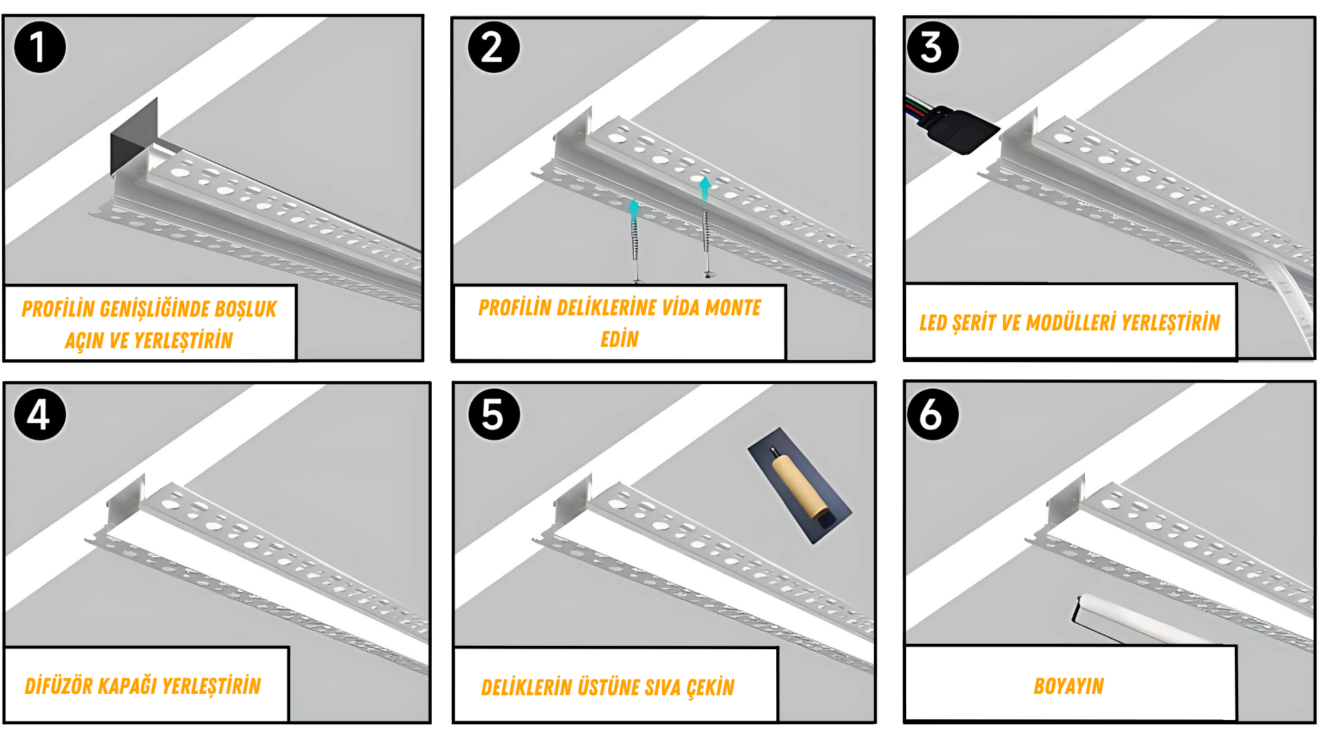 Led profillerini alçıpan uygularken, en önemli noktalardan biri, profilin düzgün yerleştirilmesidir. Alçıpana yerleştirilen LED profillerinin ölçülerinde herhangi bir gönye daralması olmamalıdır. Profilin düzgün bir şekilde yerleştirildiğinden emin olmak için, montaj sırasında doğru ölçülerin alındığına ve profilin yerleştirildiği yüzeyin düzgün olduğuna dikkat edilmelidir. Ayrıca, alçıpan profili sıkıştırıp gönyesini daraltmak, difüzör kapağının düzgün bir şekilde yerleştirilmesini zorlaştırabilir. Bu tür bir daralma, difüzör kapağının takılmasını engelleyebilir ve montajı zorlaştırabilir. Bu küçük detaylar, LED aydınlatmanın performansını artırır.