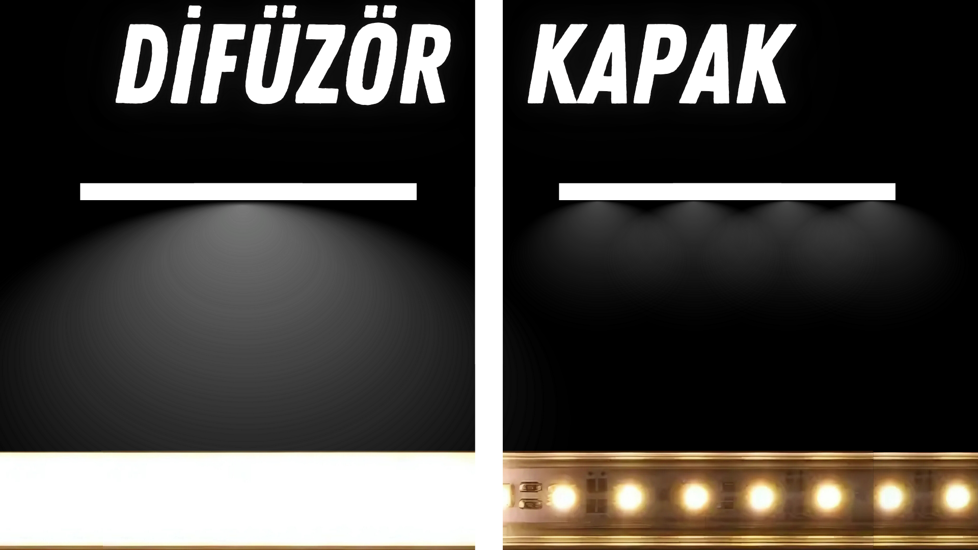 Evet, difüzör kapaklarımız ışığı homojen bir şekilde yansıtarak LED profillerin daha yumuşak ve göz yormayan bir aydınlatma sağlamasına yardımcı olur. Bu özellik, ışığın eşit dağılmasını sağlayarak daha estetik ve verimli bir aydınlatma deneyimi sunar.